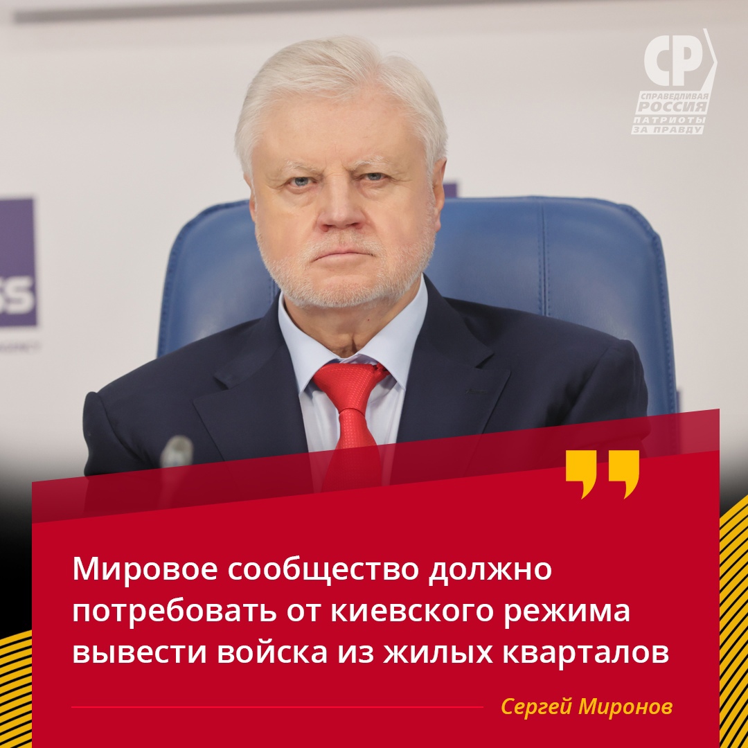 ❗ "Я призываю еще раз поднять вопрос о преступной террористической тактике режима Зеленского на всех международных площадках, включая Совет Безопасности ООН, и потребовать вывести украинских военных из жилых кварталов. В будущем правовую оценку всем этим военным преступлениям даст международный трибунал, который обязательно нужно провести над неонацистами и их пособниками", – заявил Сергей Миронов.